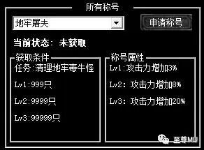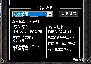 至尊奇迹独家称号系统,完成任务获得称号,提升角色属性。MU私服称号是展示实力的荣誉象征。