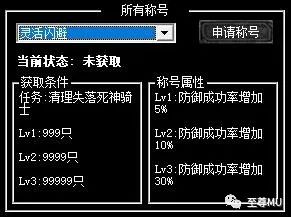 • 申请机制: 获得称号需先申请对应的称号任务。
